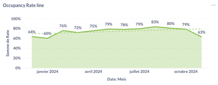 El mercado STR de Málaga está experimentando un crecimiento notable. El número de propiedades disponibles aumentó un 20% interanual, lo que resalta su popularidad entre los propietarios. Las tendencias estacionales muestran picos de ocupación del 83% en julio, pero incluso los meses más tranquilos, como enero, mantienen una respetable tasa del 64%, gracias al clima cálido de invierno y su animada escena cultural.